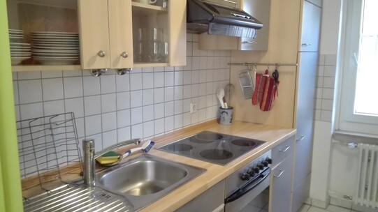 L’appartement est tout près d’une forêt, le Schönbuch. La piscine couverte, des magasins et des terrains de jeux ne sont pas loin. Les arrêts de bus sont à 5 minutes et il y a un bus toutes les cinq minutes.